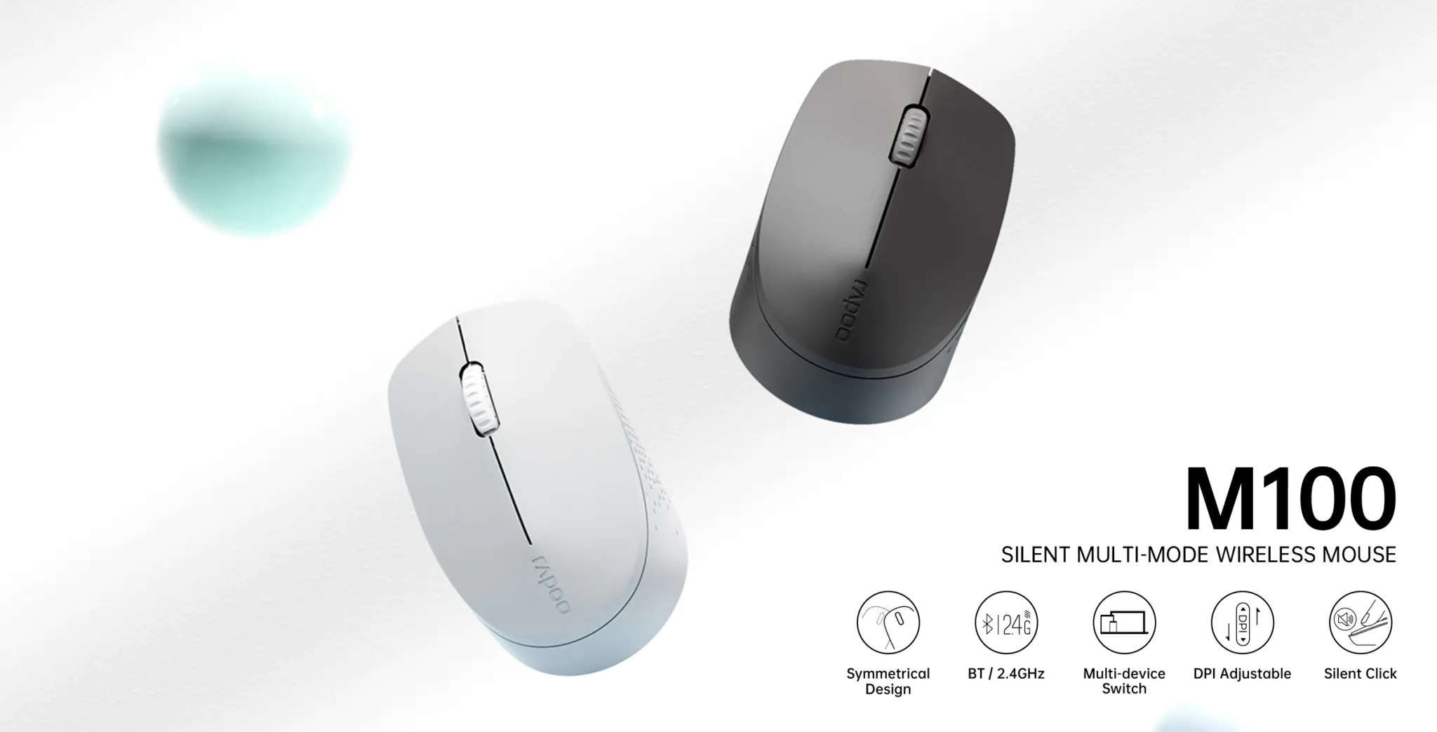 ماوس Rapoo M100 یک ماوس بی‌سیم و کم‌صدا با طراحی ارگونومیک است که به حسگر 1000DPI مجهز شده و دقت بالایی را در حرکات ارائه می‌دهد. این ماوس با استفاده از بلوتوث و دانگل 2.4GHz، اتصالی پایدار و بدون تأخیر را فراهم می‌کند. با برد بالای اتصال و مصرف بهینه باتری، انتخابی عالی برای کارهای روزمره و اداری است.